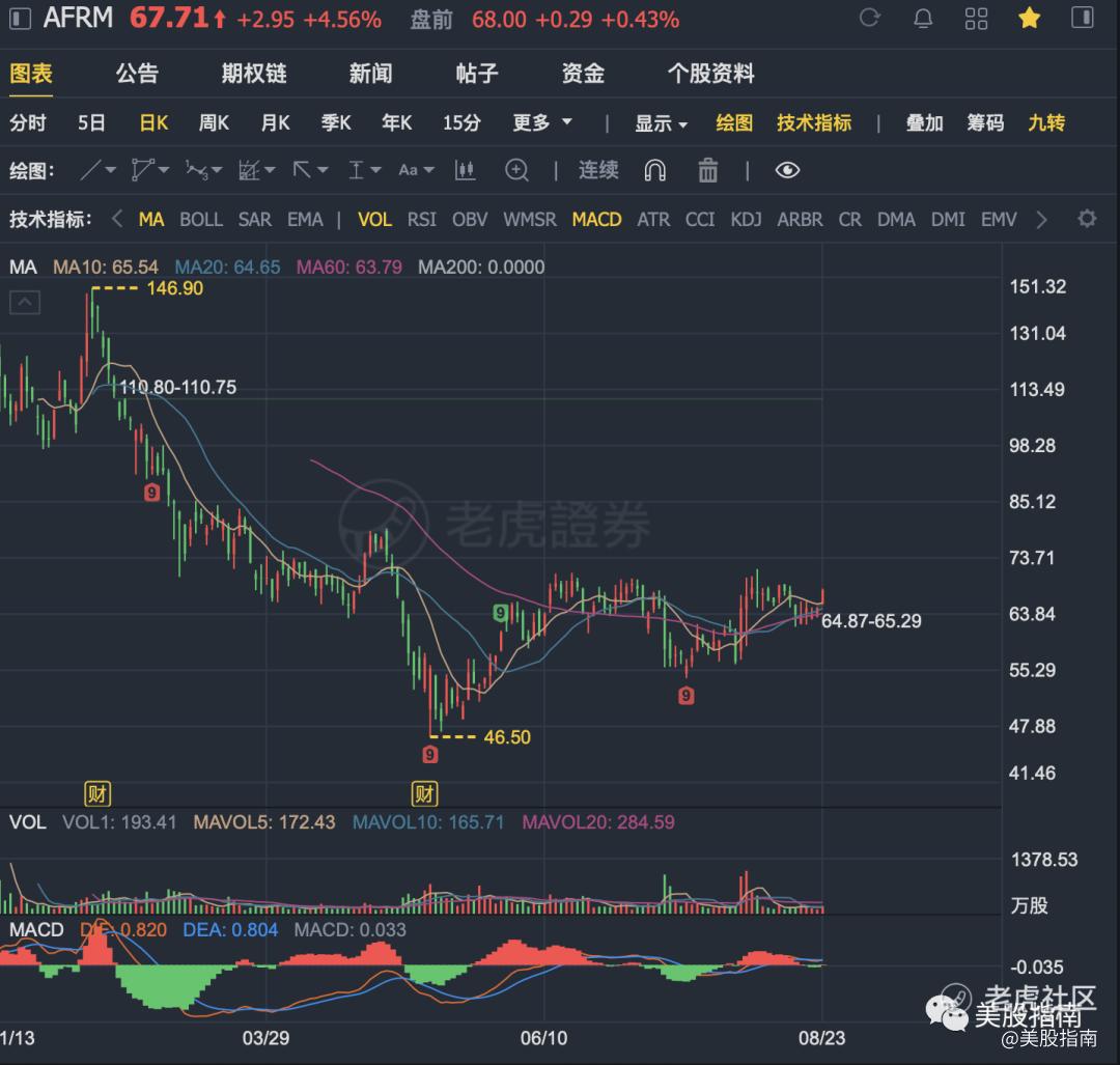 摘要: 今天聊聊一家支付公司Affirm,主要爲用戶提供“先買後付”服務(其實就是類似支付寶花唄), 9月9號即將公佈新的季度財報, 從日k圖來看, Affirm在走勢企穩,向上拉昇的意思。感興趣的朋友可以看看。本文首發於公衆號: 美股指南
