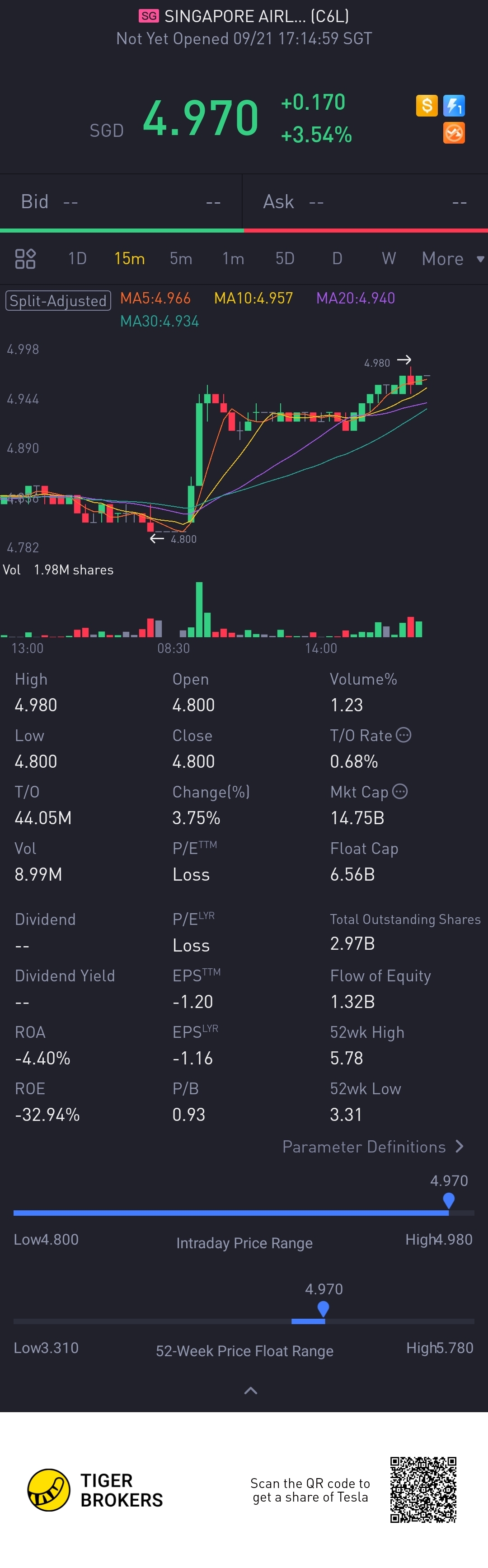 $SINGAPORE AIRLINES LTD(C6L.SI)$ smooth...
