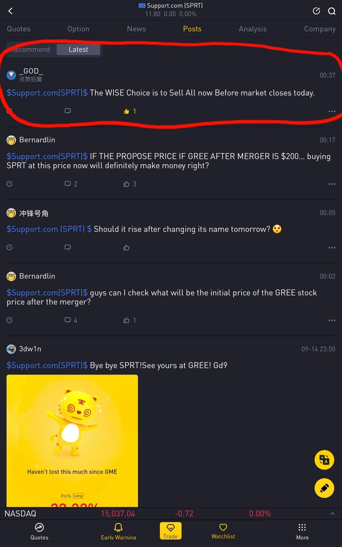 $Greenidge Generation Holdings Inc.(GREE)$More than 200 of you had come to Thanks me for warning you all to Exit before the merging takes place. I had also informed My Followers the accurate starting price for GREE after merging with SPRT. Upon my Advice, MANY of you had made Very Big Profits after selling SPRT beforenthe merging. Congrats to many of you whom escaped GREE after Selling SPRT!