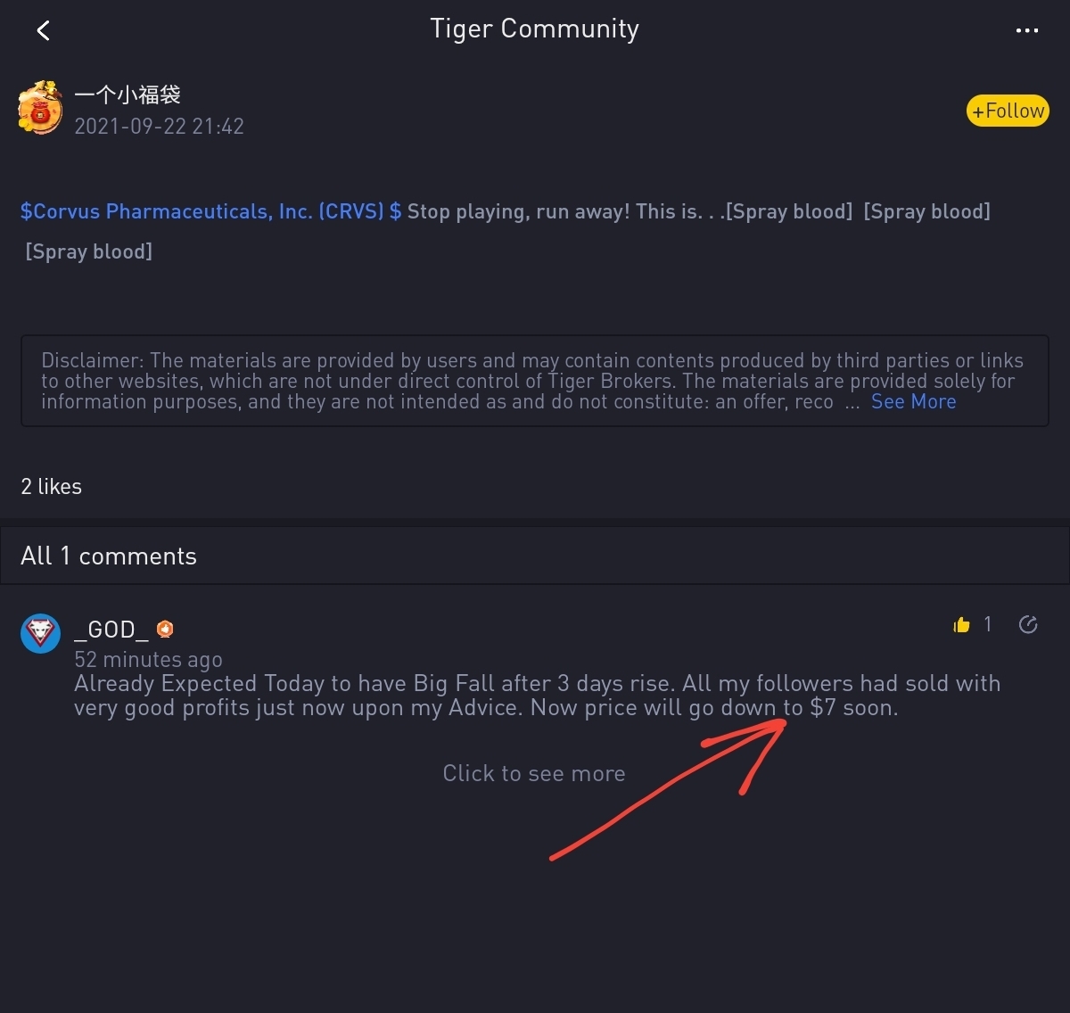 $Corvus Pharmaceuticals(CRVS)$I had already ACCURATELY Informed All My Followers that 30 mins after market opens, this Stock Price will Start to Fall Down to $7. See Below Photo.