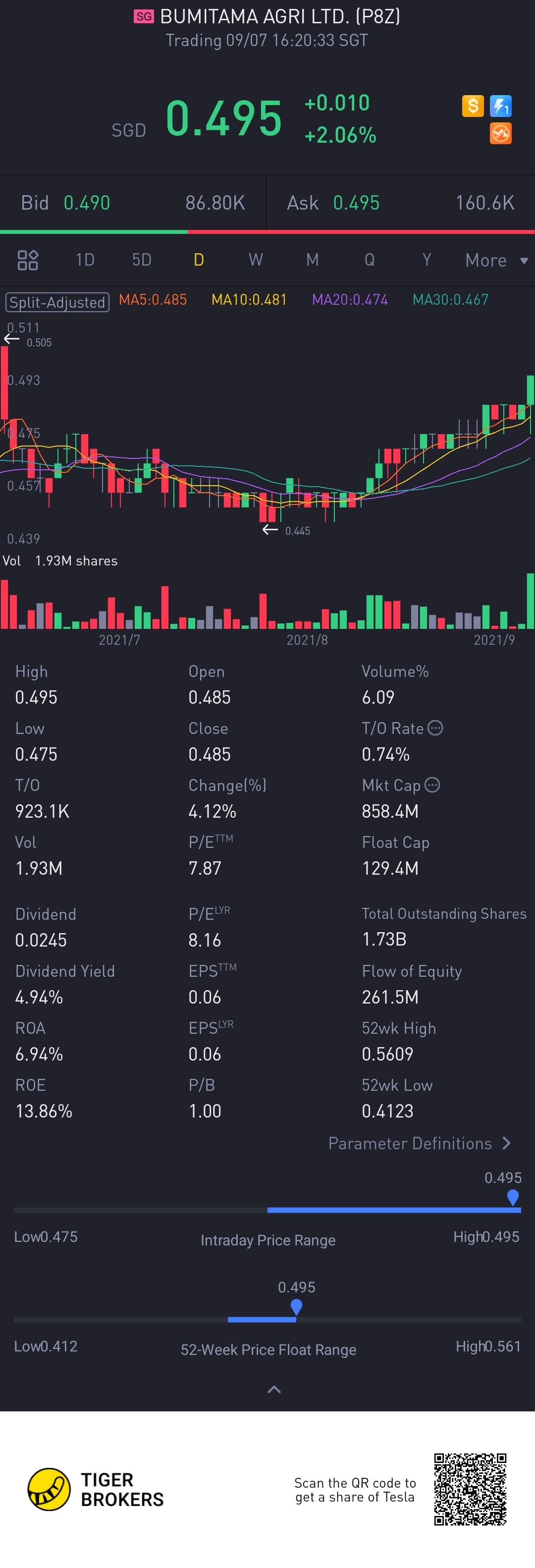 $BUMITAMA AGRI LTD.(P8Z.SI)$Considering buying this. Growing earning and revenue. Good return on equity too. new compaNY with potential. Only question is when to enter? Time the market or time in the market?