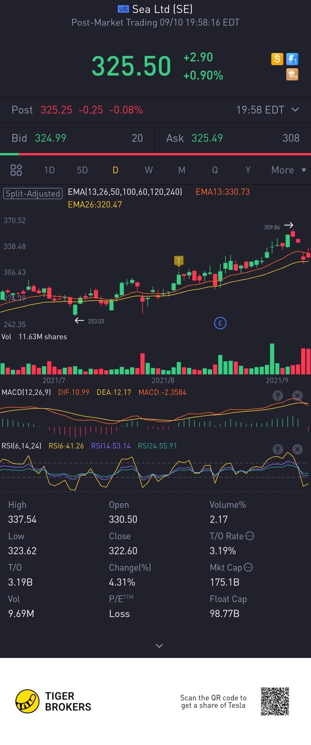 $Sea Ltd(SE)$hovering EMA13&26. Time to rebound