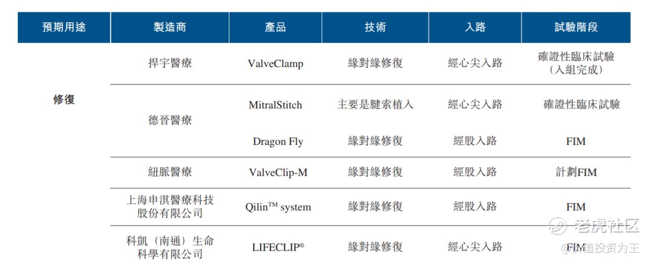 競爭格局方面,國內已上市的只有雅培的MitraClip,捍宇醫療可能是第二家上市公司,正在進行臨牀試驗的還有4家公司: