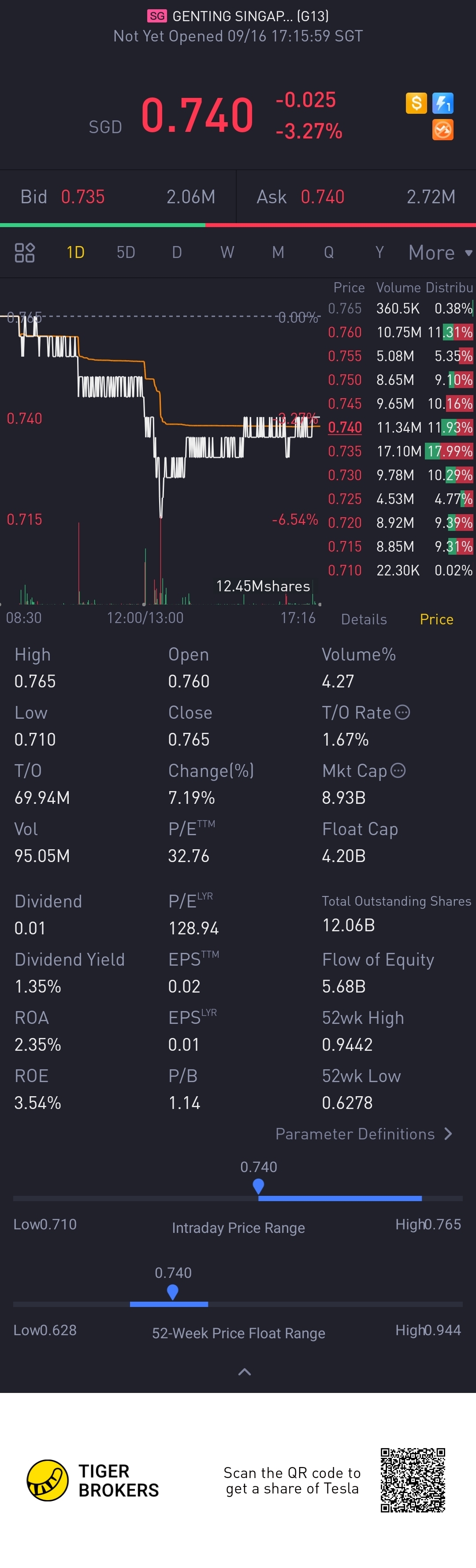 $GENTING SINGAPORE LIMITED(G13.SI)$Possibly overact for supervision adjustment, yet may keep zigzagging at low bottom.