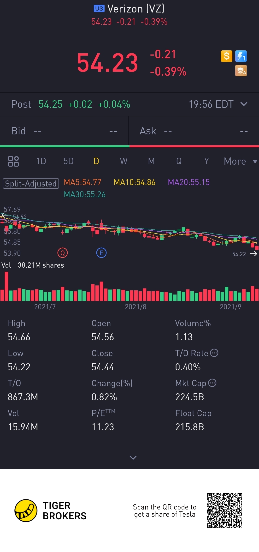 $Verizon(VZ)$ all the way down. What happened to this stock? Why is it recommended and held by Buffet for long term...