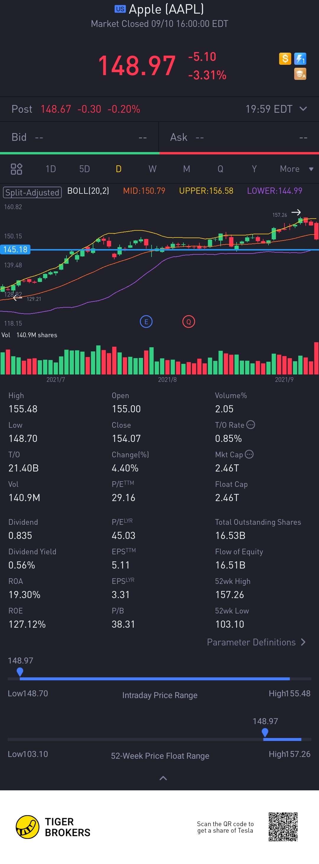 $Apple(AAPL)$will AAPL fall to 145? Let's see ~