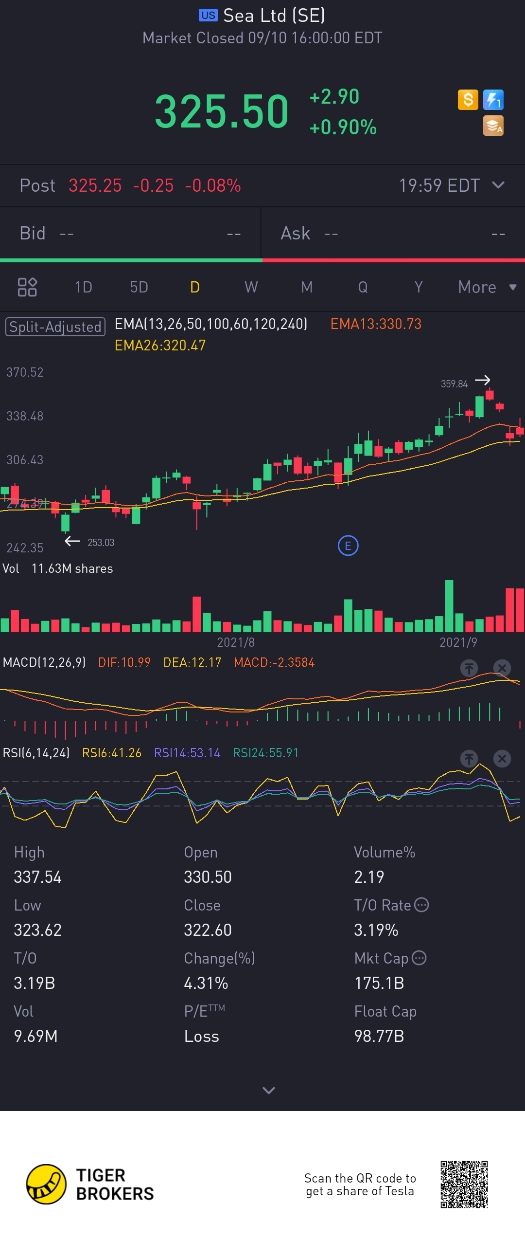 $Sea Ltd(SE)$rebounding from EMA26, giving a good discount.