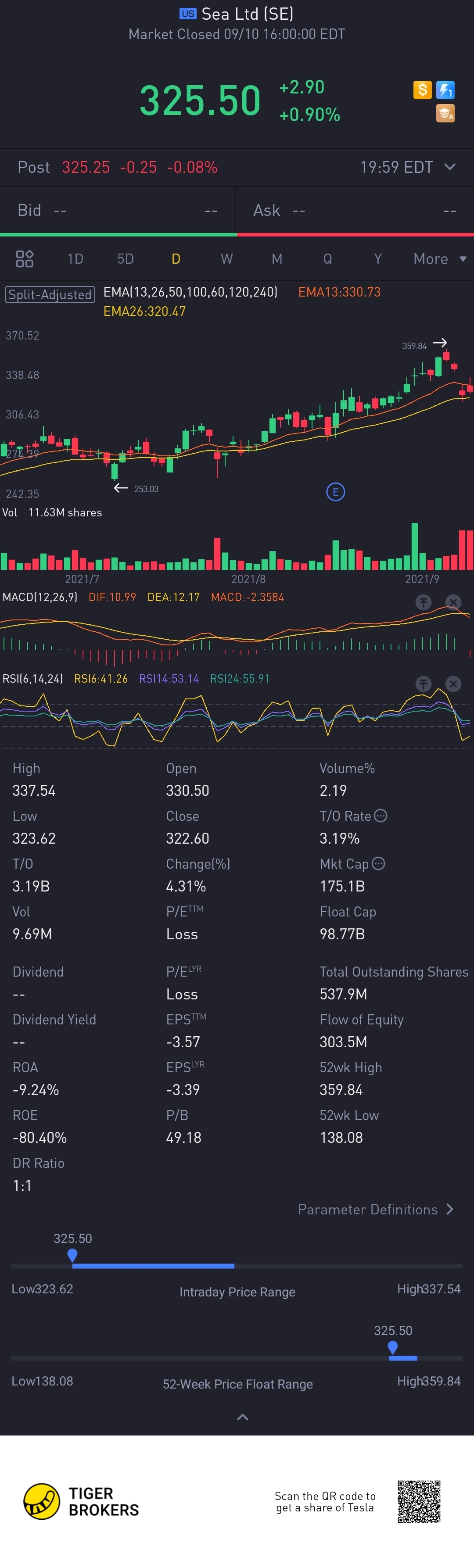 $Sea Ltd(SE)$will it drop below EMA26? ?