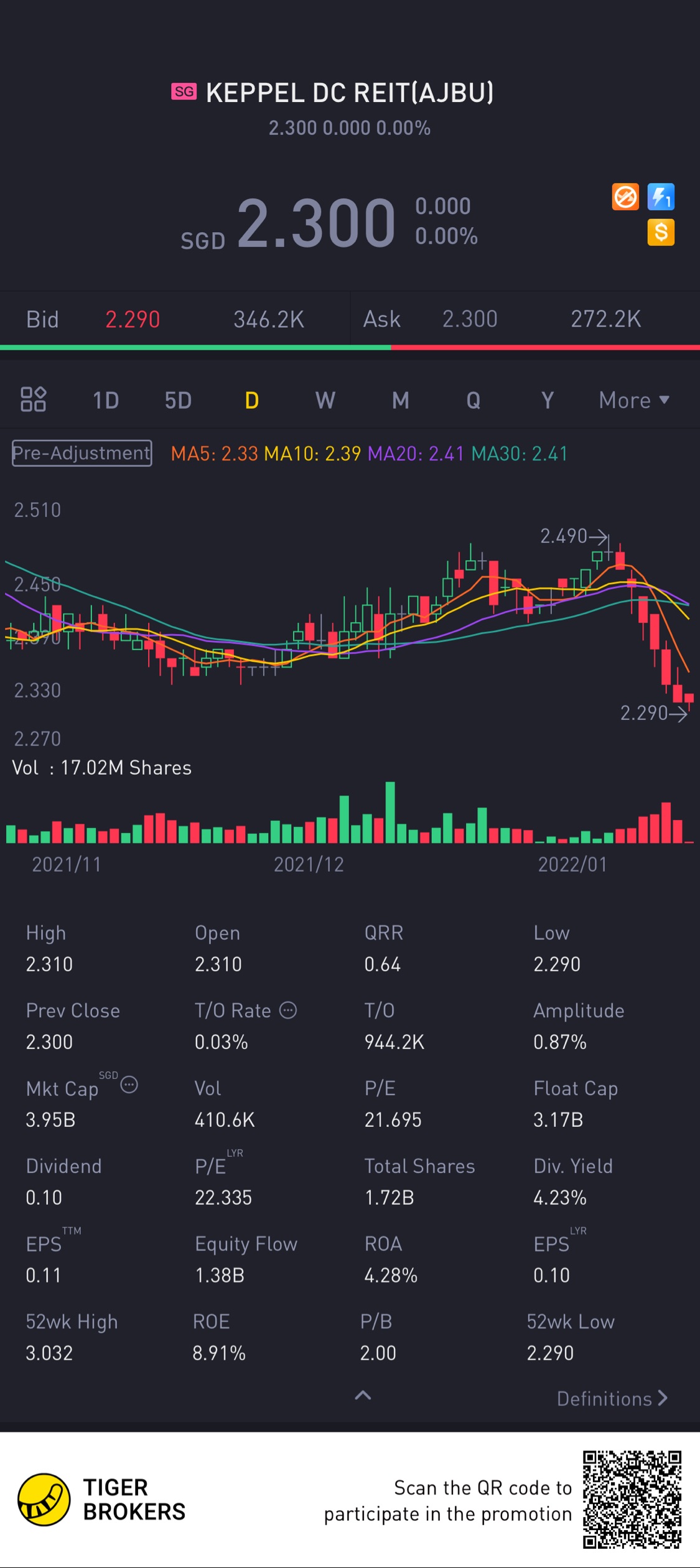 $KEPPEL DC REIT(AJBU.SI)$$2.20 would be myentry price for DCA