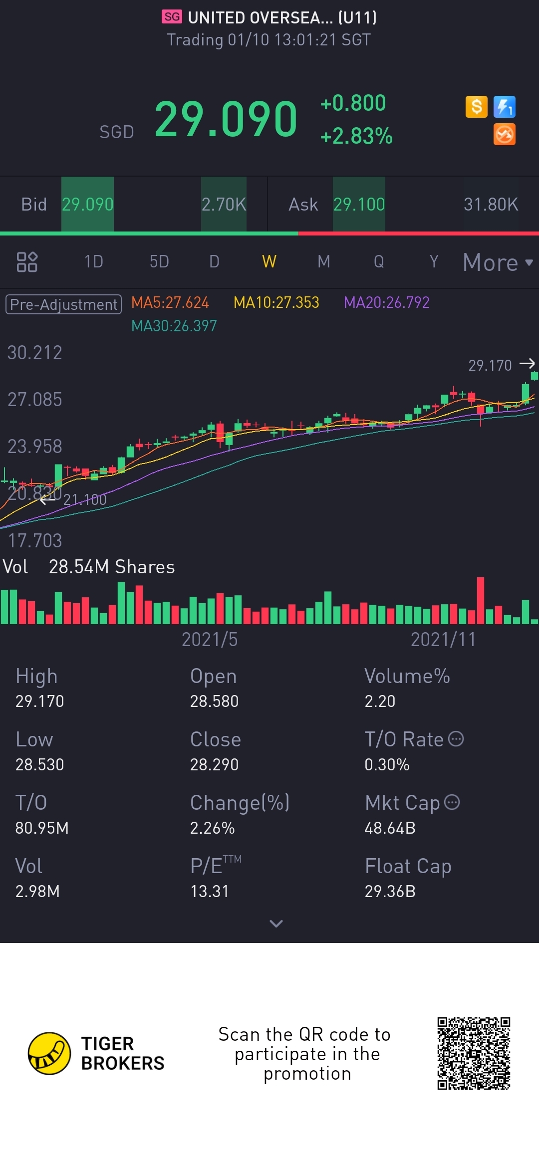 $UNITED OVERSEAS BANK LIMITED(U11.SI)$UOB is moving! It is