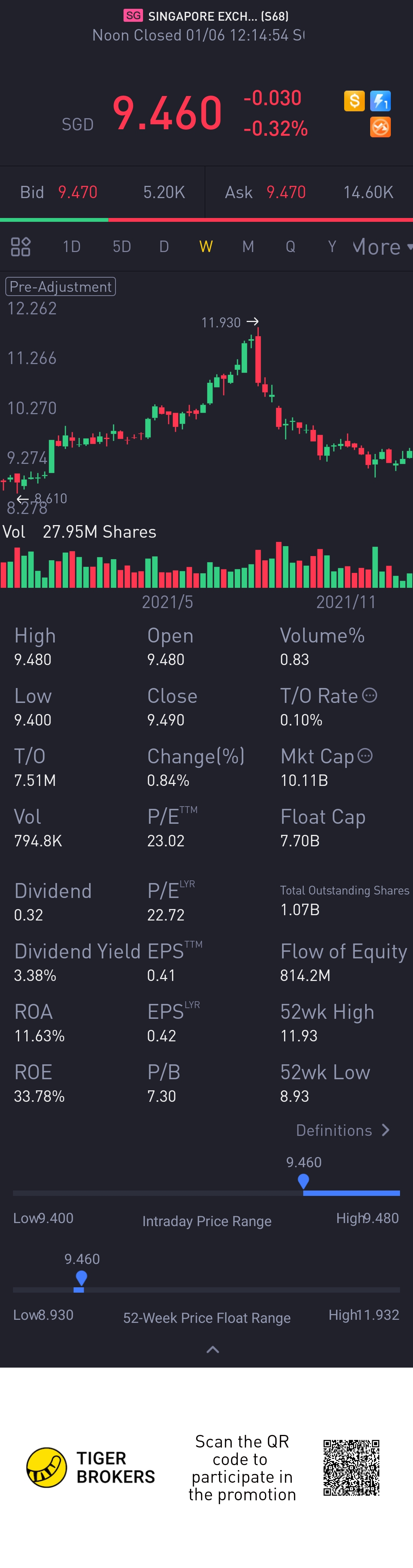 $SINGAPORE EXCHANGE LIMITED(S68.SI)$