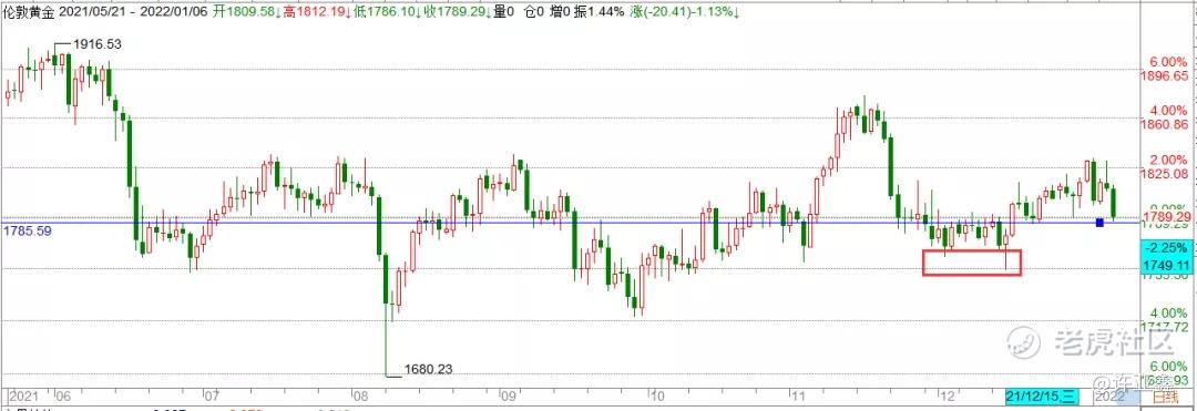 As shown in the above figure, the starting point of this round of gold rise is at 1752 of the Federal Reserve interest rate meeting on December 15th, that is to say, if the daily level cannot hold the support of 1785, it will open up the space to go down to 1750-60.