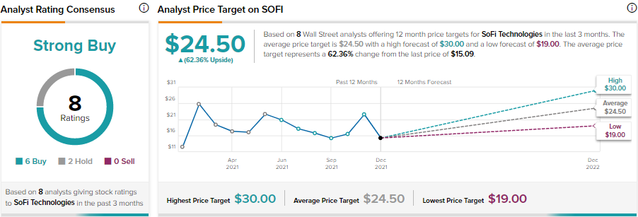 Along with Horgan, the majority of analysts have a bullish view of SoFi stock. On TipRanks, SoFi stock has received 6 Buy and 2 Hold recommendations for a Strong Buy consensus rating. Meanwhile, the average SoFi price target of $24.50 represents 62.4% upside potential to current levels.