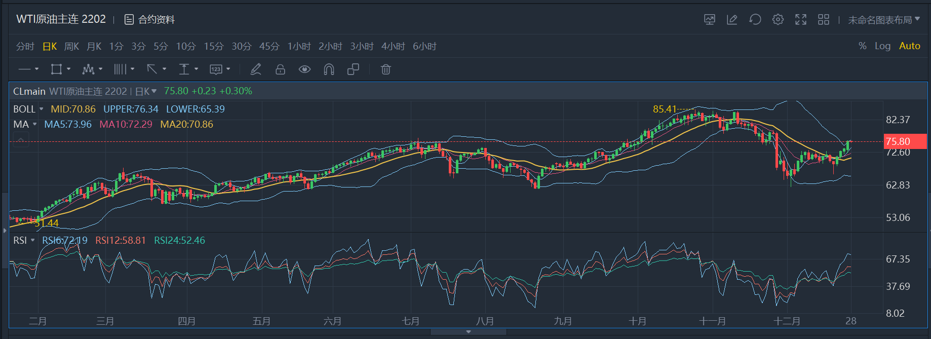 The market hopes that the Omicron variant strain will have a limited impact on global demand in 2022, even if the surge in cases in COVID-19 leads to the cancellation of a large number of flights. The main contract of WTI crude oil futures rose by 2.4%; The main contract of Brent crude oil futures rose by 3.2%, and the settlement price was reported at 78.60 USD/barrel.