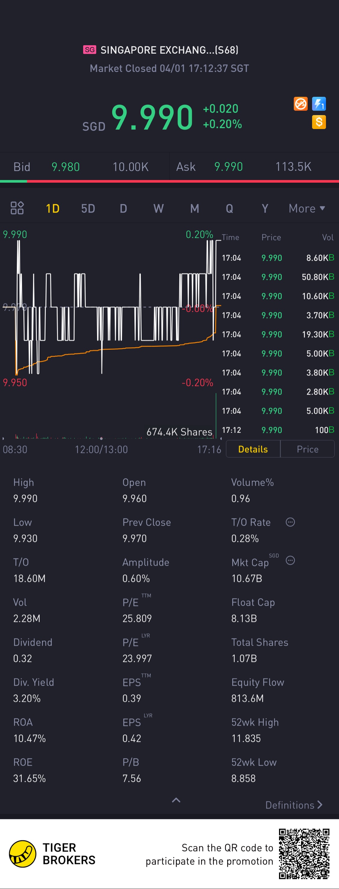 $SINGAPORE EXCHANGE LIMITED(S68.SI)$Almost reaching the next milestone.. way to go!