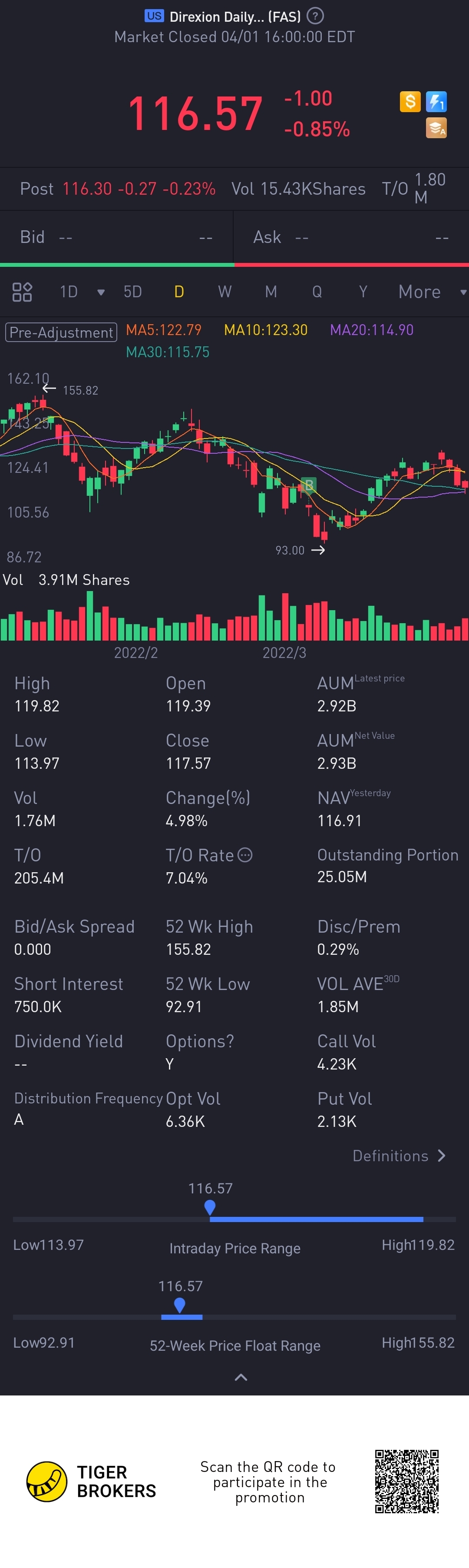 $Direxion Daily Financial Bull 3x Shares(FAS)$ .