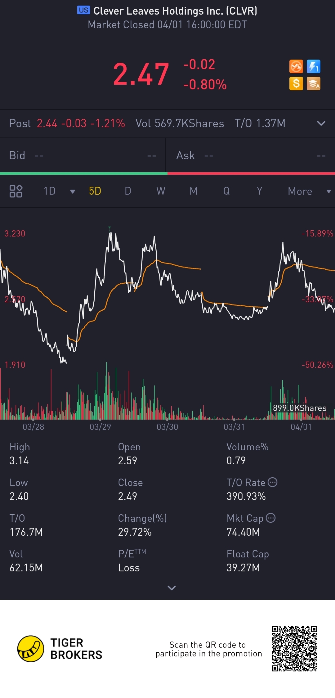 $Clever Leaves Holdings Inc.(CLVR)$[Happy] [Happy]