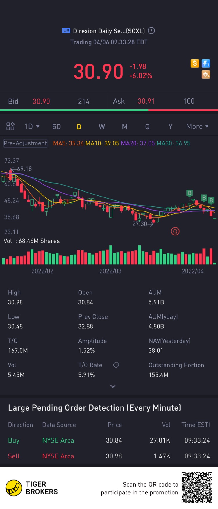 $Direxion Daily Semiconductor Bull 3X Shares(SOXL)$Up up up to the sky