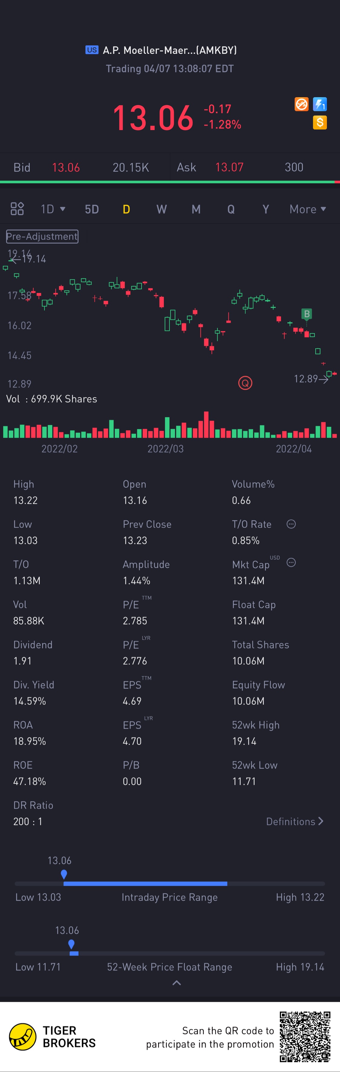 $A.P. Moeller-Maersk A/S(AMKBY)$Nice