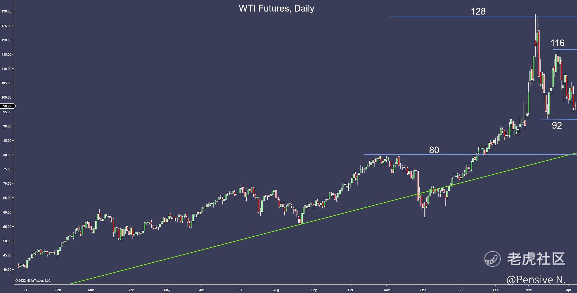 - WTI is back below $100, but is still too high for a world contending with high inflation and growing recession risks