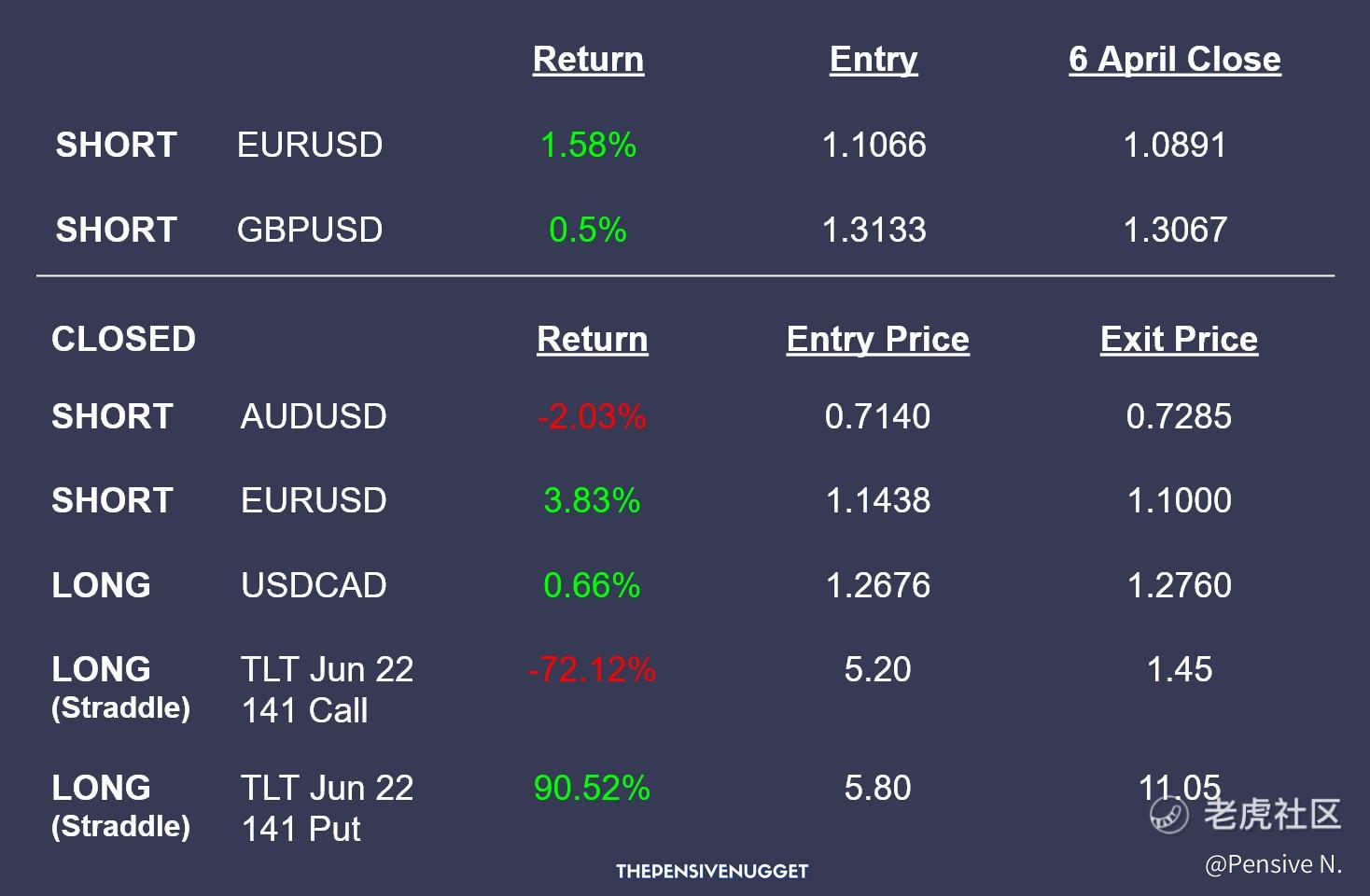 - Exited straddle on TLT in anticipation of long yields turning lower, for a net gain of 18.4%