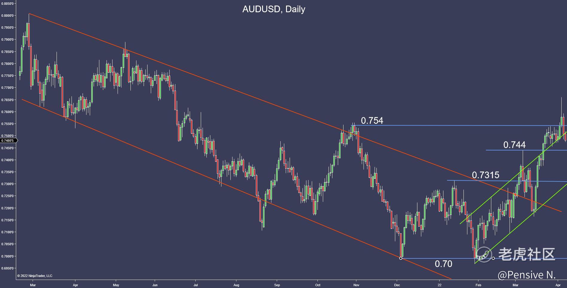 - AUD broke above major resistance ~0.754, reaching as high as 0.766, but failed to sustain its breakout