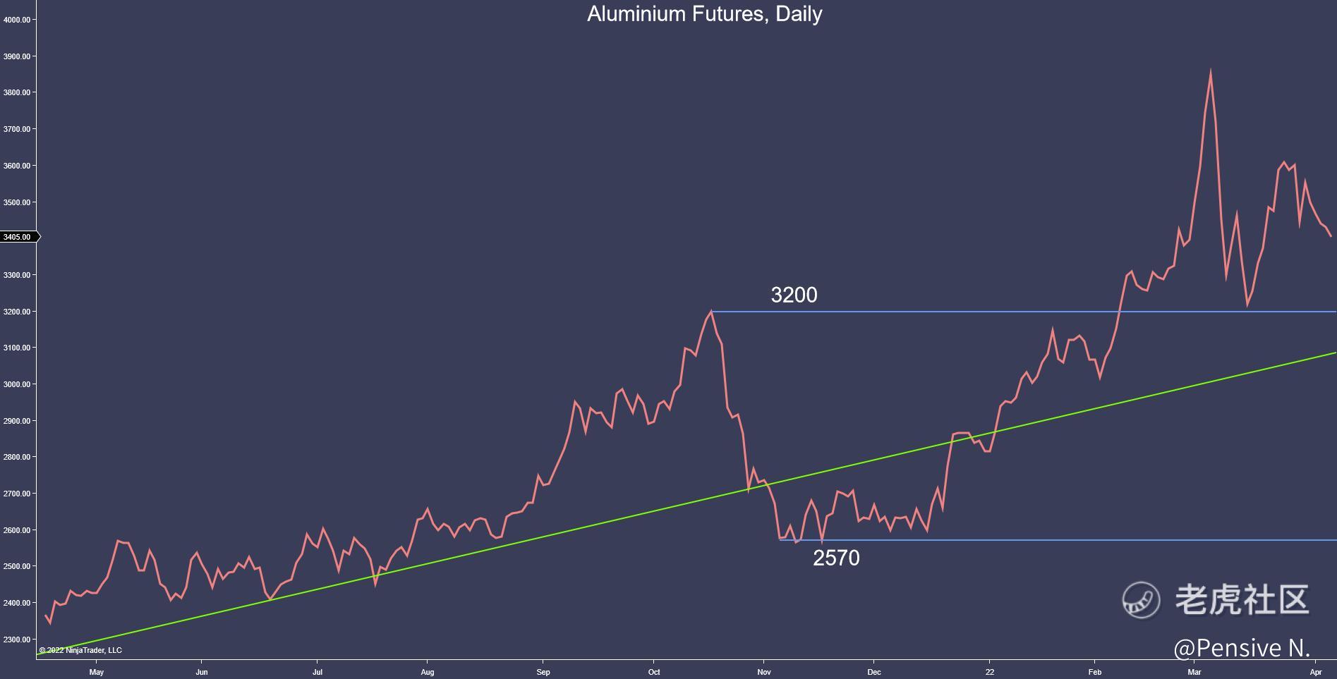 - Aluminium has still failed to regain its previous highs ~$3880, and seems to have settled into a period of consolidation