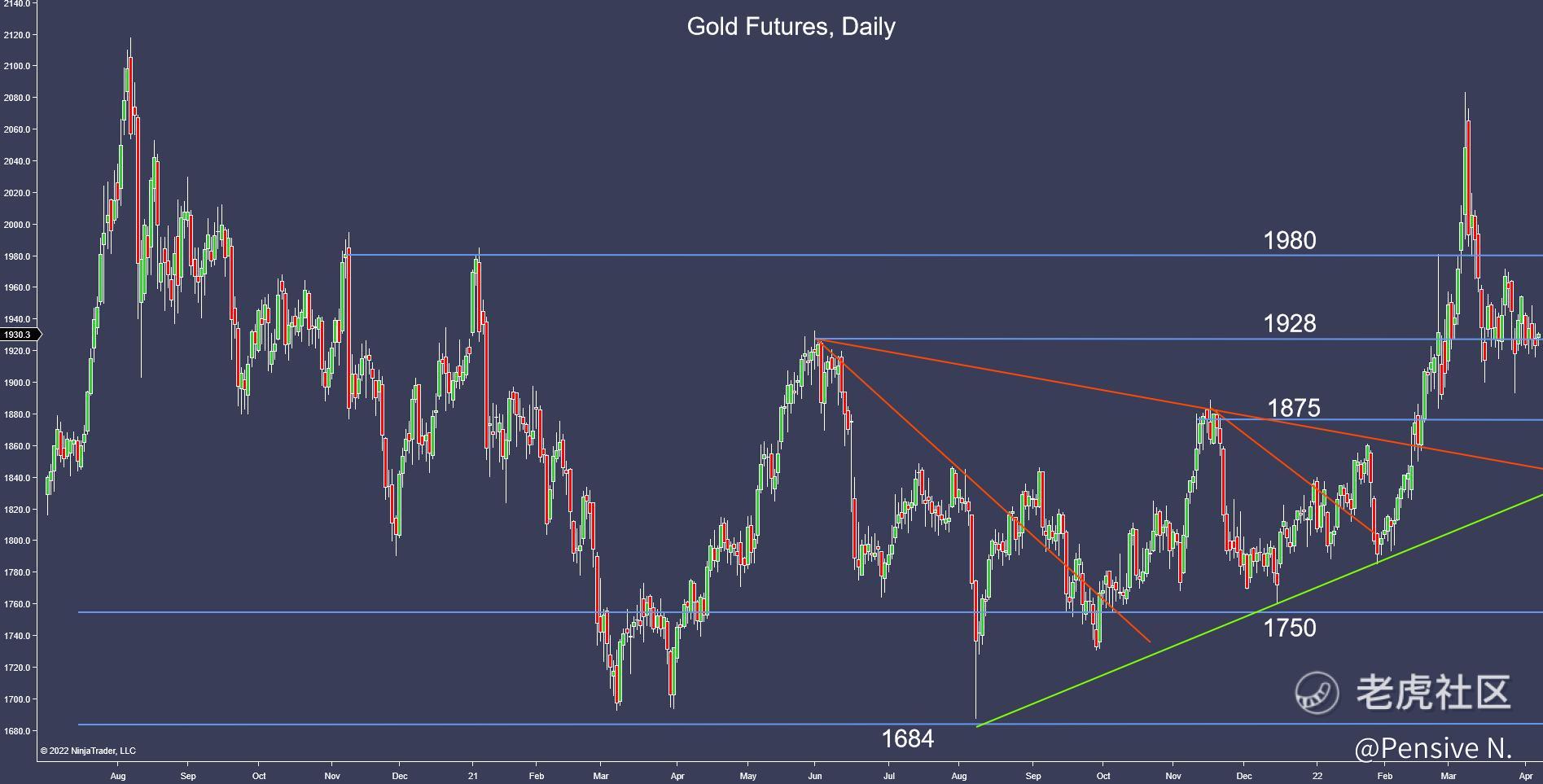 - As long as support at $1875 holds, another run higher (maybe to test March’s $2080 high) cannot be discounted