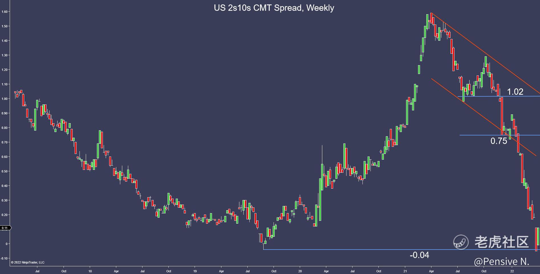 - Note that 2s10s inverting is enough of a warning, it steepening again doesn’t invalidate this