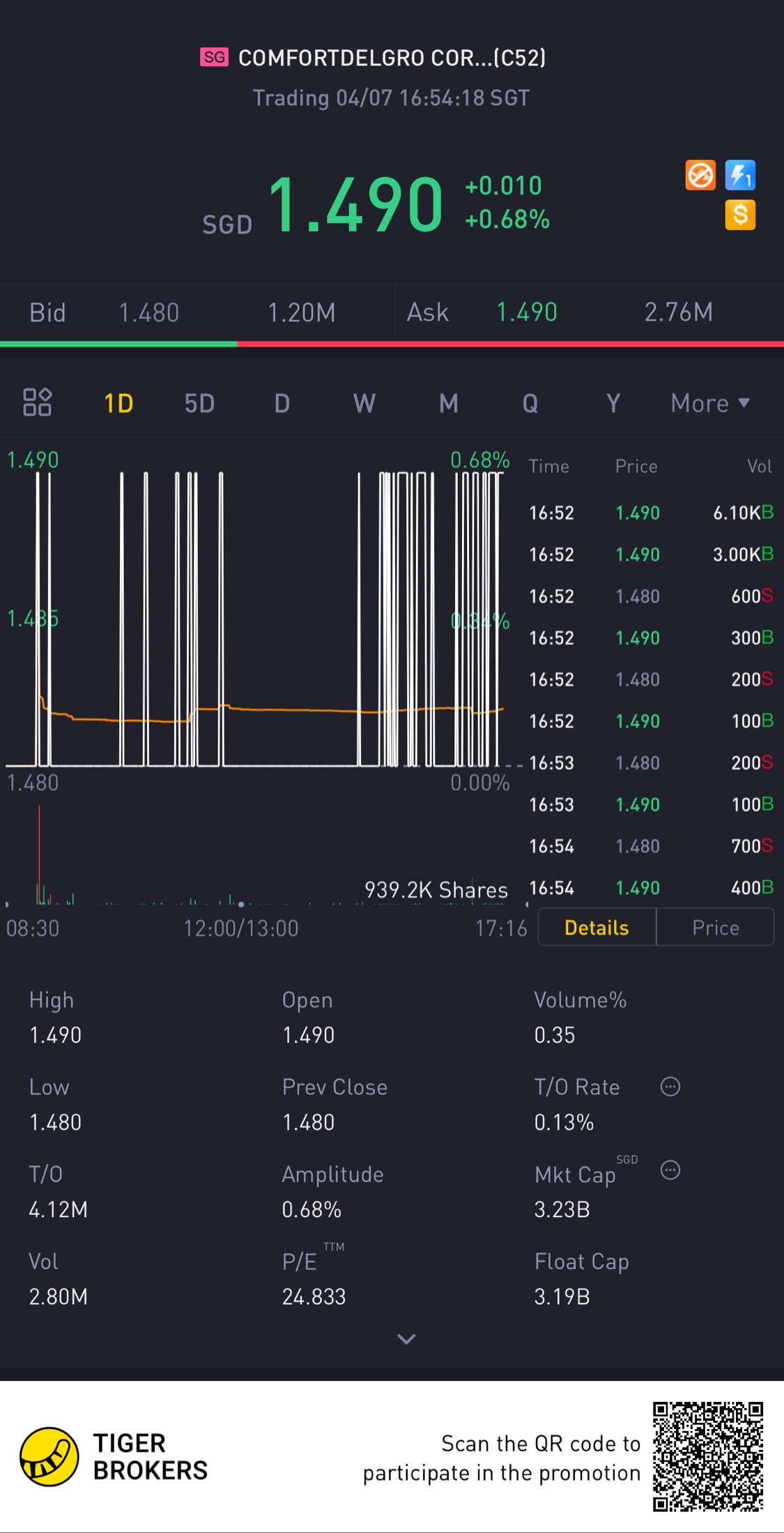 $COMFORTDELGRO CORPORATION LTD(C52.SI)$These few days same, 1.48/1.49.....can go up pls