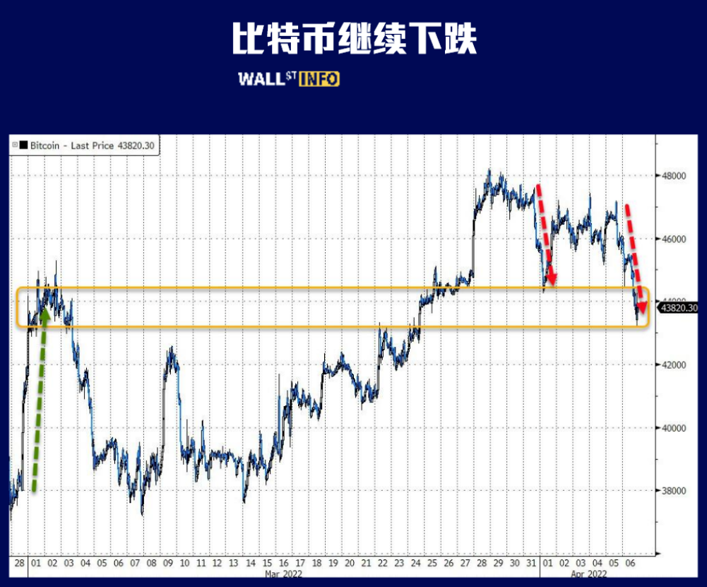 Bitcoin fell back below $44,000