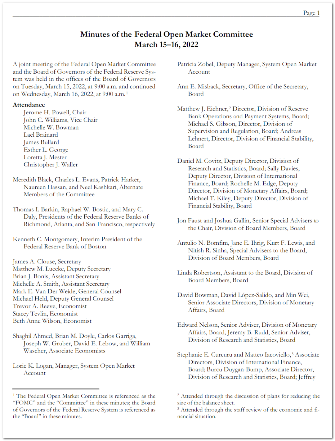 Third, in addition to the minutes