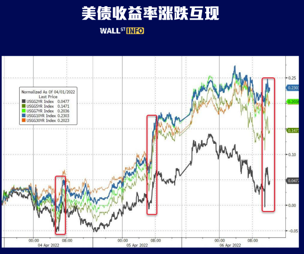 US bond yields are mixed, short-term bonds are basically flat, while long-term bonds are further sold off (the two-year US bond yields that move in sync with the expected increase in interest rates are basically flat)