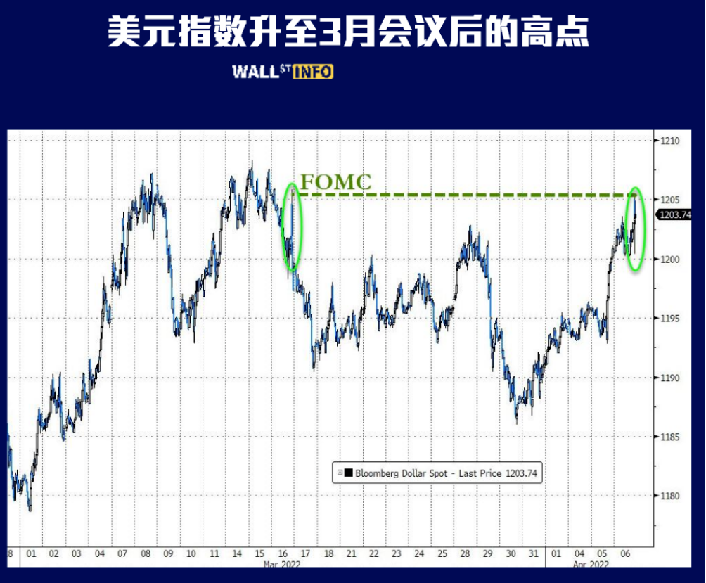 The dollar index rose to a high after the March meeting