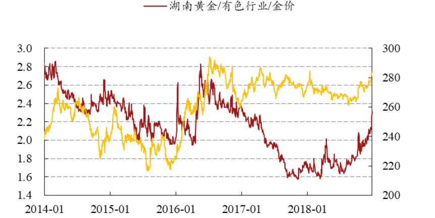 湖南黃金與有色指數和金價的關係