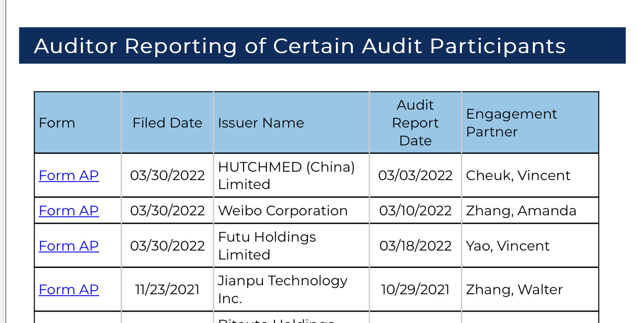 $Tiger Brokers(TIGR)$Relax, let's not spread FUD.Tiger and FUTU are using different auditing firms. FUTU uses the same auditing firm as Weibo, probably why it is listed in the list.