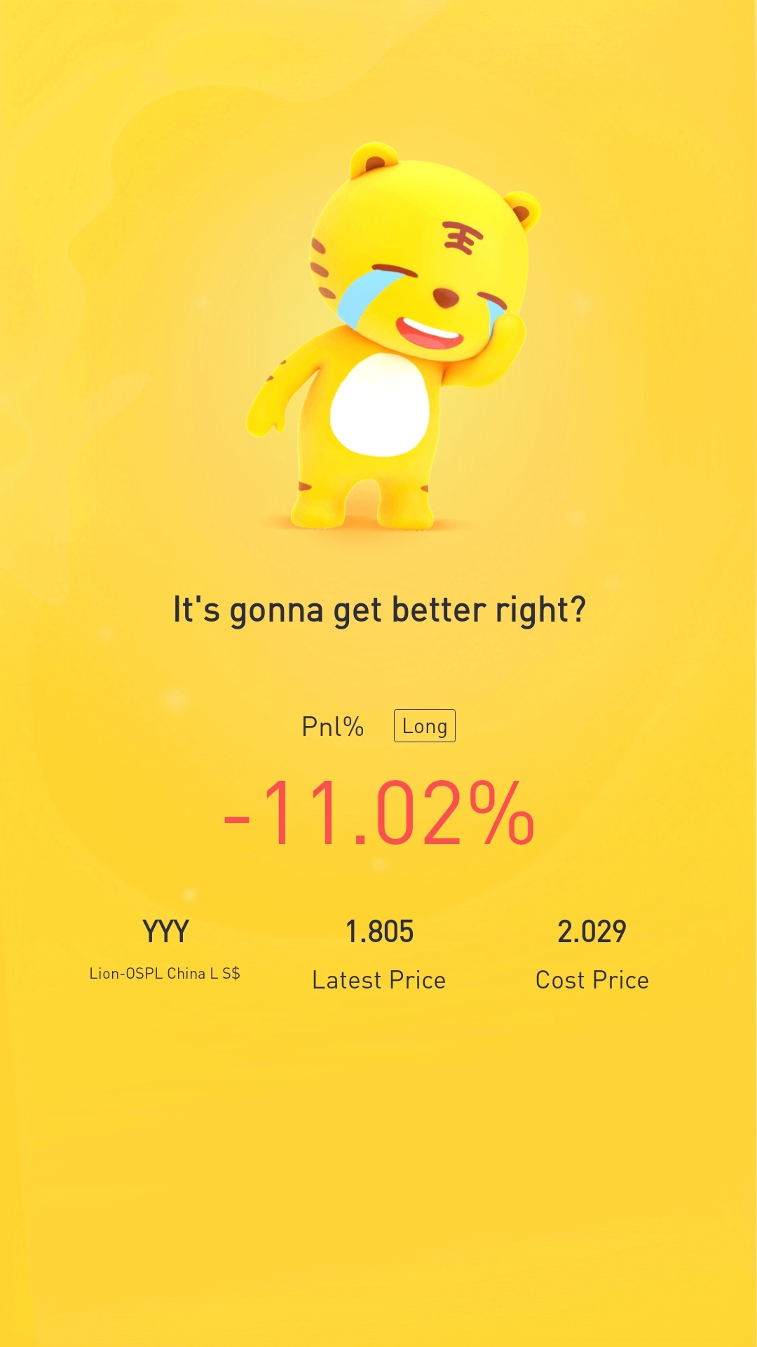 $Lion-OSPL China L S$(YYY.SI)$Aiks. Another percentage away from breakeven