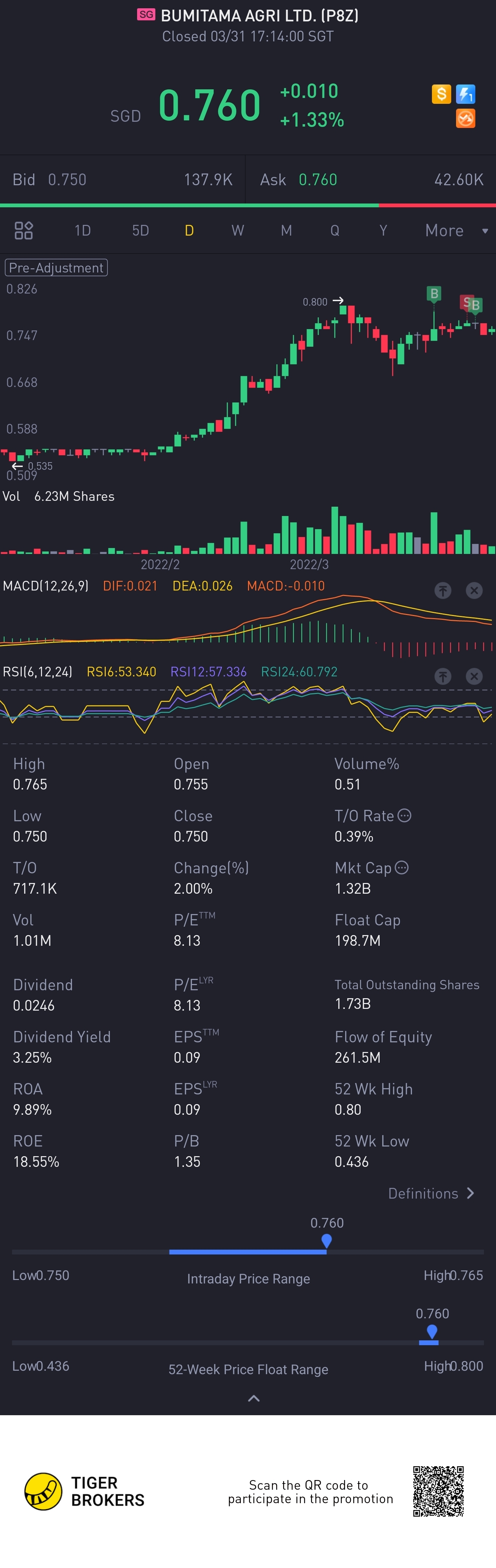 $BUMITAMA AGRI LTD.(P8Z.SI)$👍