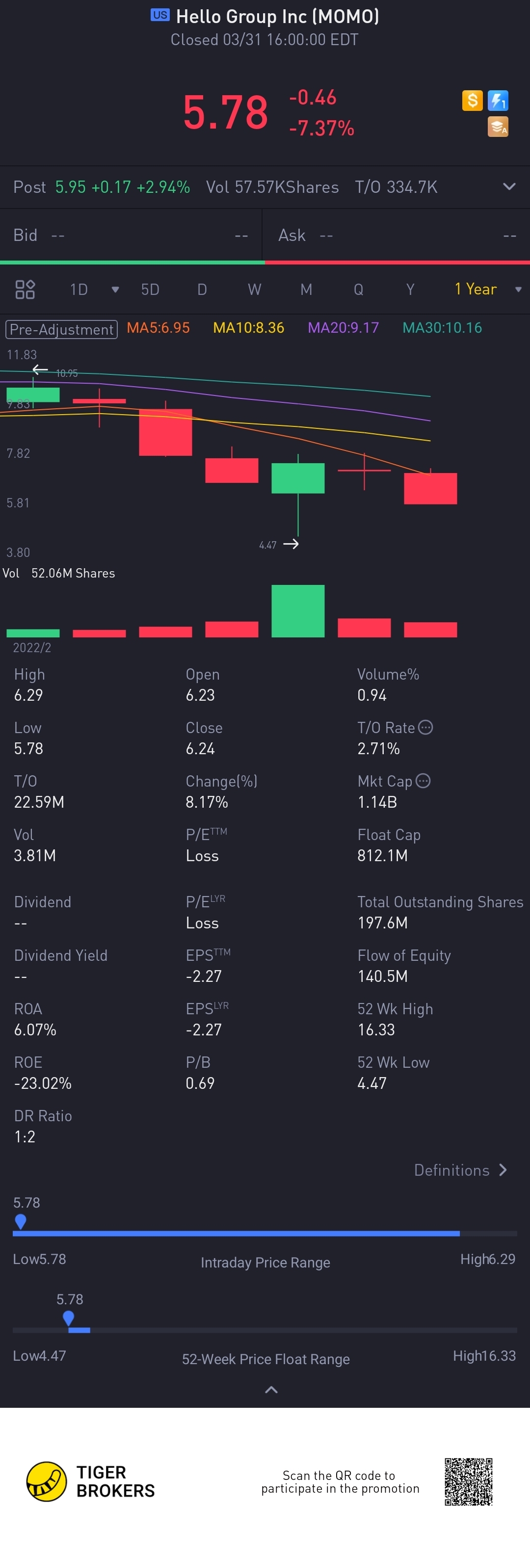 $Hello Group Inc(MOMO)$[Surprised] [Surprised] [Surprised]