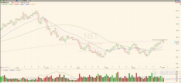 Cloudflare ($$(NET)$) tries to go over its SMA200, but yesterday the volumes were very low for the red day. If the price breaks yesterday's high, the trade might work. Stop Loss: 5%.