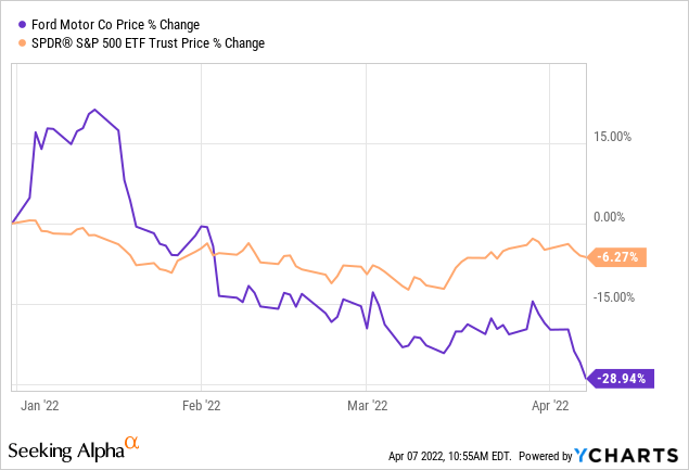 With all factors combined, I can't see Ford doing well, and here's why. Small-cap stocks are struggling this year with inflation (referring to the model, not saying Ford is a small-cap), the S&P 500 is trading at a 4.54x premium, and the risk-free rate of the market is increasing as the 10-year yield is gaining momentum. Thus, leading me to the conclusion that Ford's stock will underperform in the near term.