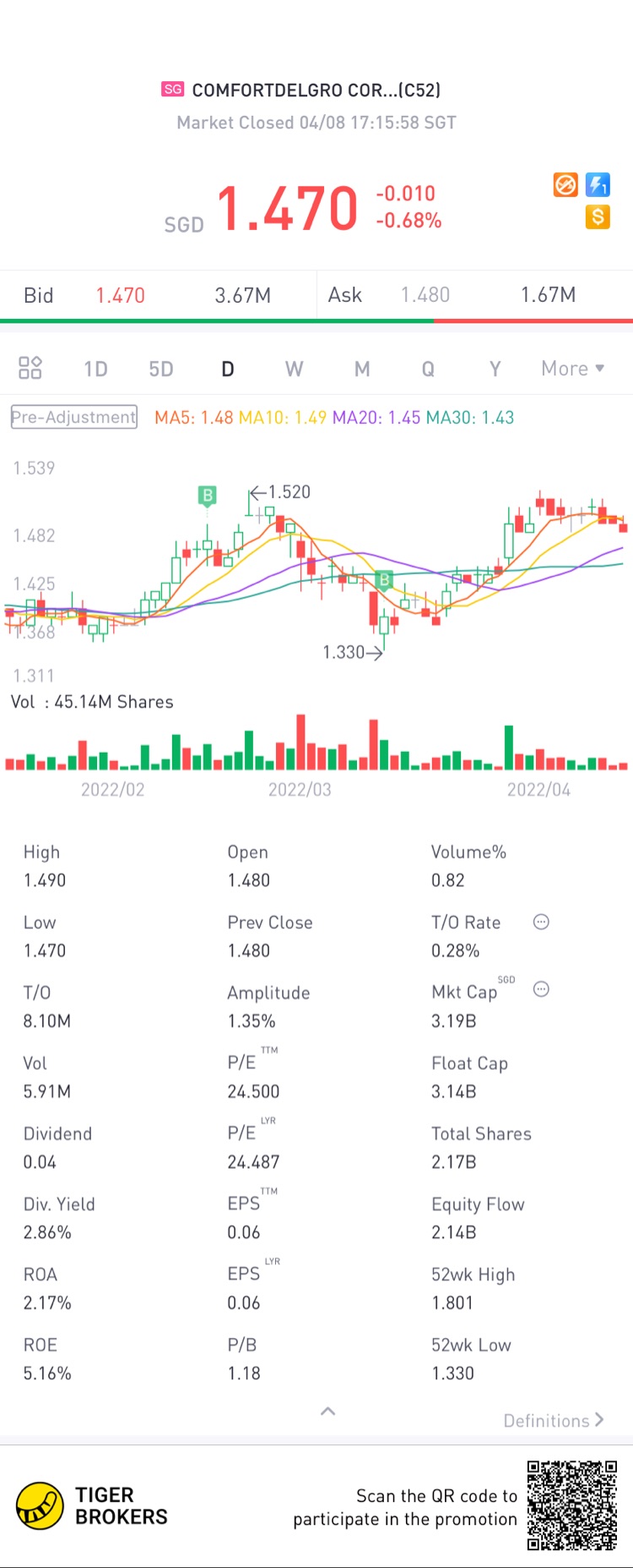 $COMFORTDELGRO CORPORATION LTD(C52.SI)$Hope go up again soon