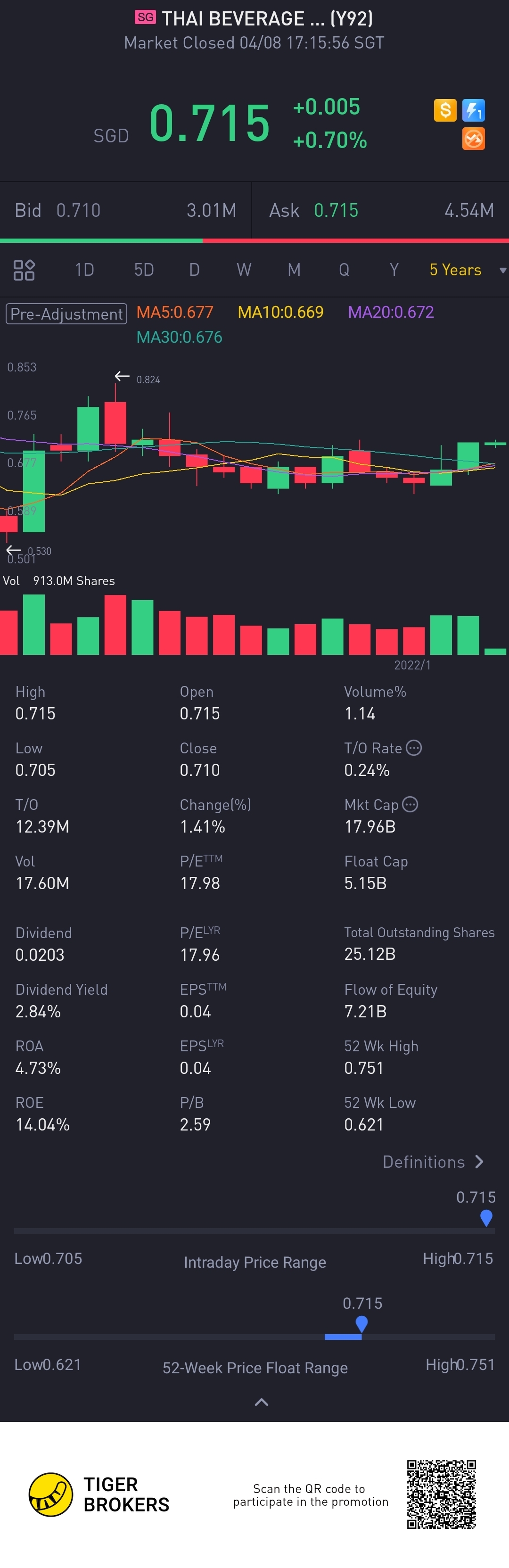 $THAI BEVERAGE PUBLIC CO LTD(Y92.SI)$BBuy