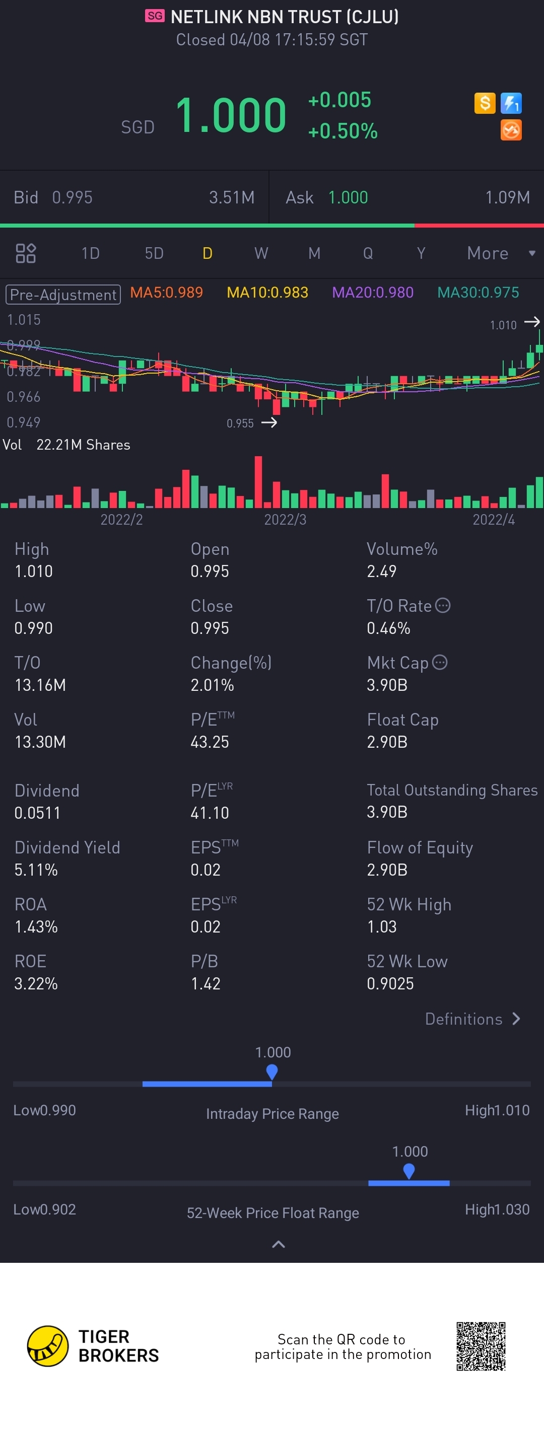 $NETLINK NBN TRUST(CJLU.SI)$Whoa netlink has gone up today [Surprised] [Surprised] [Surprised]