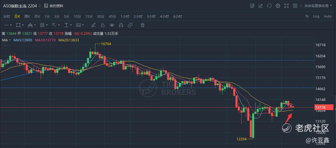 As shown in the above figure, the A50 index pulled up after the low point of 13157 in the right shoulder test before, and then the price launched a wave of counterattack as scheduled. Since the holiday, it has fallen back to the 20-day moving average of 13630 to find support. In view of the potential benefits expected from the policy level, it is possible to try to enter more again when it falls back to the supporting area, with the goal pointing to the level of 14500.