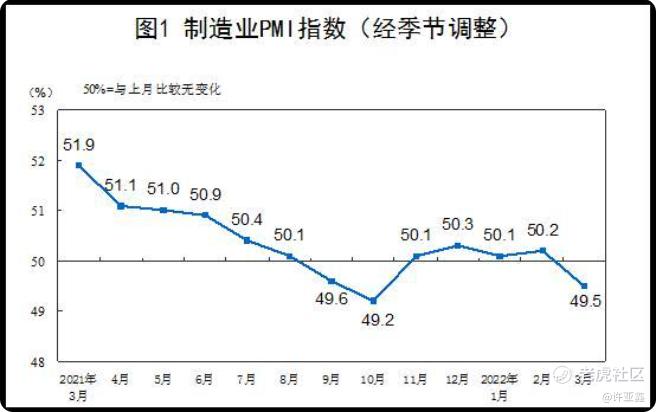 As shown in the above figure, as the leading index PMI of the economy, the manufacturing PMI index in March was 49.5%, down 0.7 percentage points from last month and lower than the critical value, which means that both domestic and foreign demand showed signs of weakening. At the same time, the PMI index of non-manufacturing and non-manufacturing industries was 48.4%, down 3.2 percentage points from last month, which also revealed signs of expected weakening.