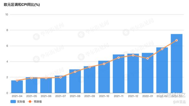 According to data released by Eurostat,In March, the CPI of the euro zone rose by 7.5% year-on-year, continuing to set a record, which was much higher than the median forecast of economists only increasing by 6.7%, and also higher than the previous value of 5.8% in February.This is the fifth consecutive month that the inflation rate in the euro zone has reached a record high.
