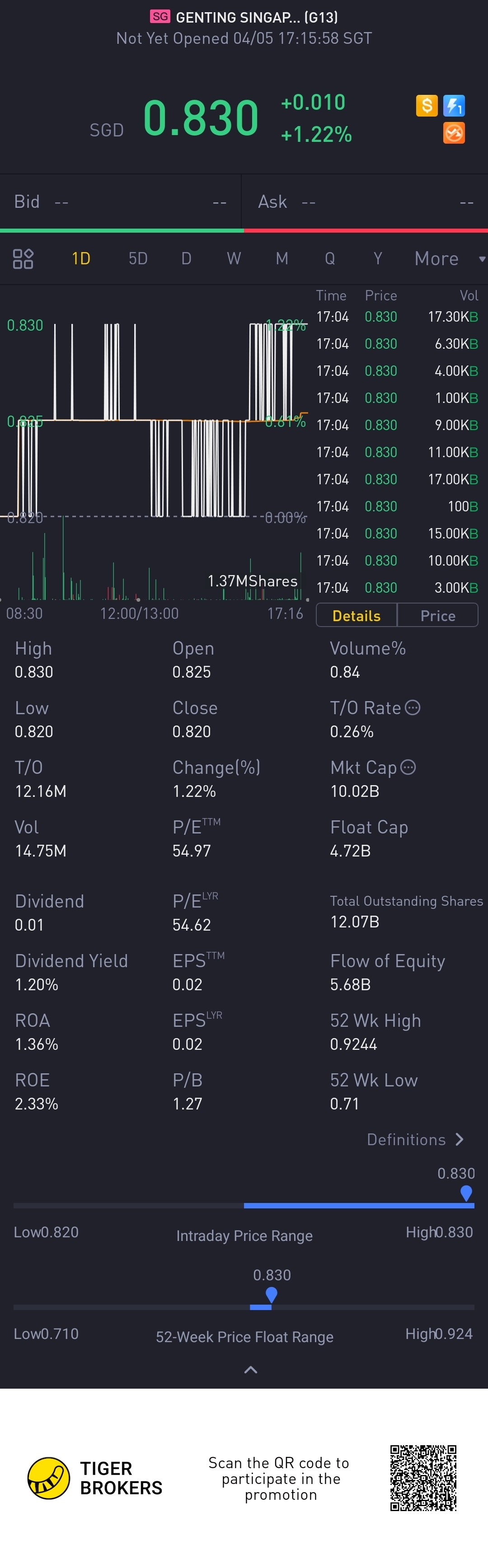 $GENTING SINGAPORE LIMITED(G13.SI)$1