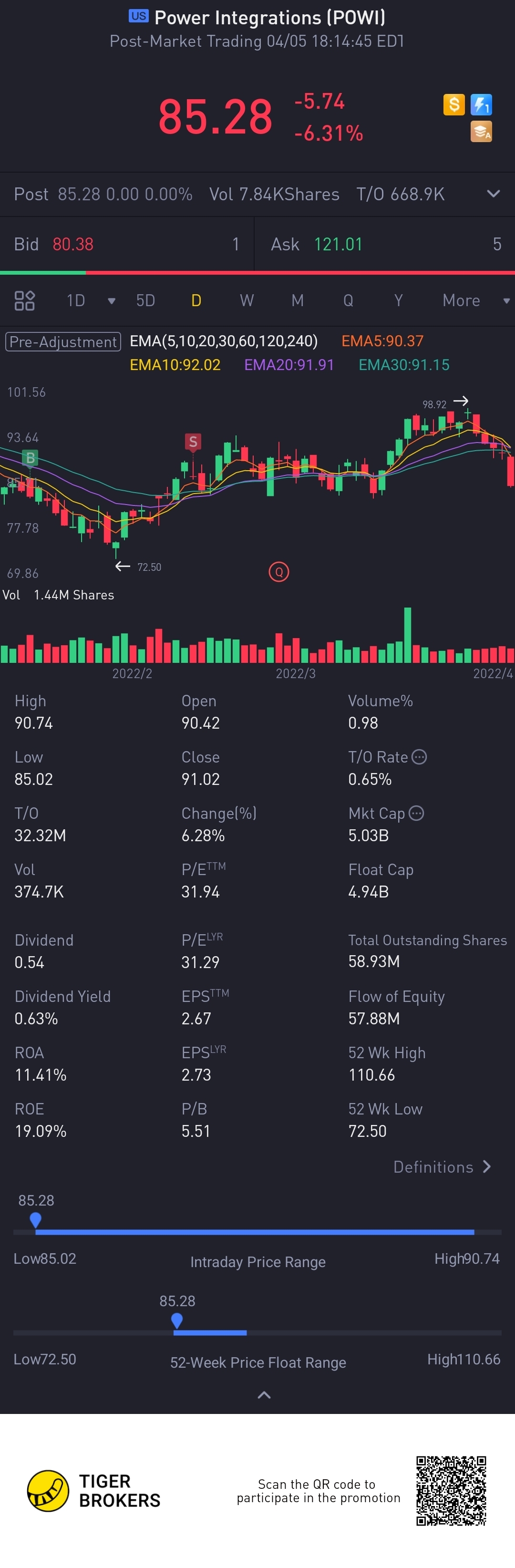$Power Integrations(POWI)$suddenly big drop yesterday. I will collect at 80 hopefully it will go down further soon