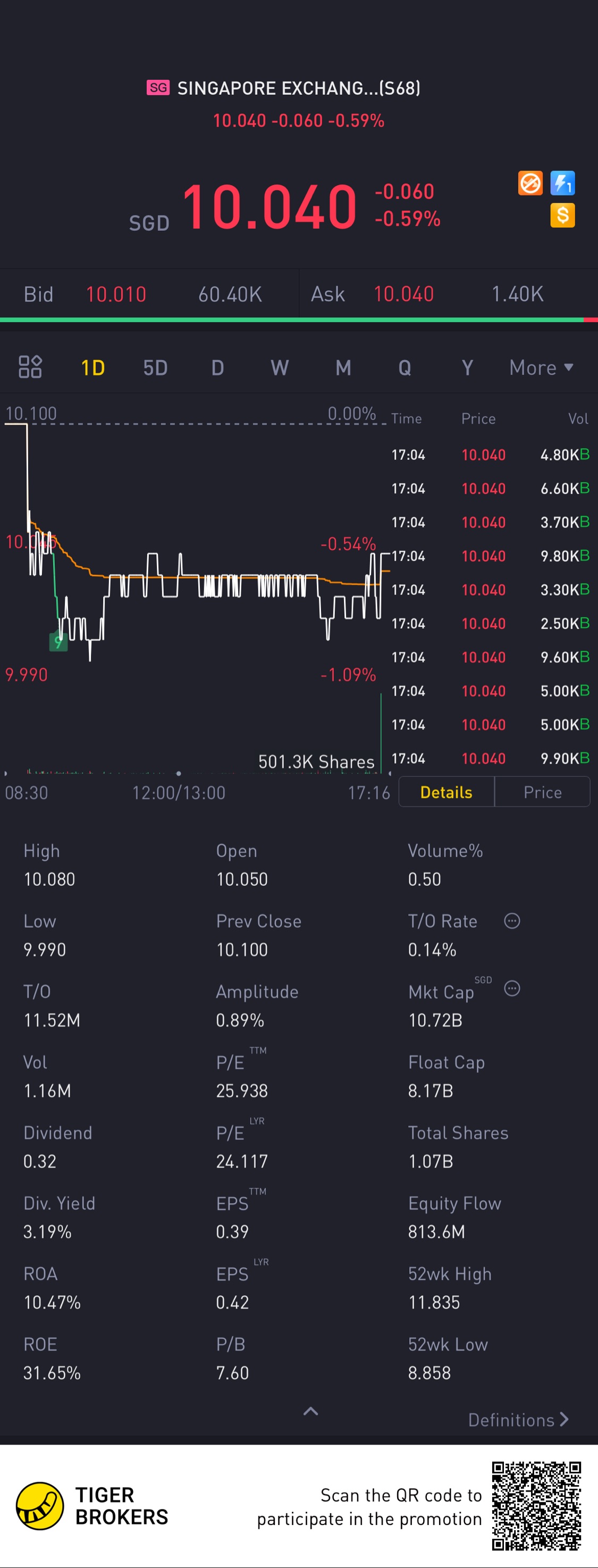 $SINGAPORE EXCHANGE LIMITED(S68.SI)$AHurray!! Please continue to stay above $10!!